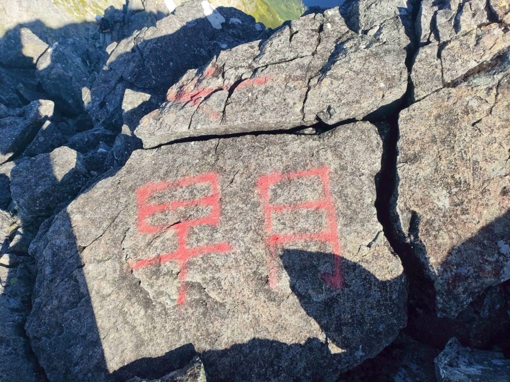 別山尾根との分岐の目印を越えあとは稜線を歩くと最後はほとんど傾斜がなくなりついに剱岳の山頂です!!