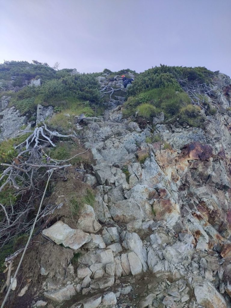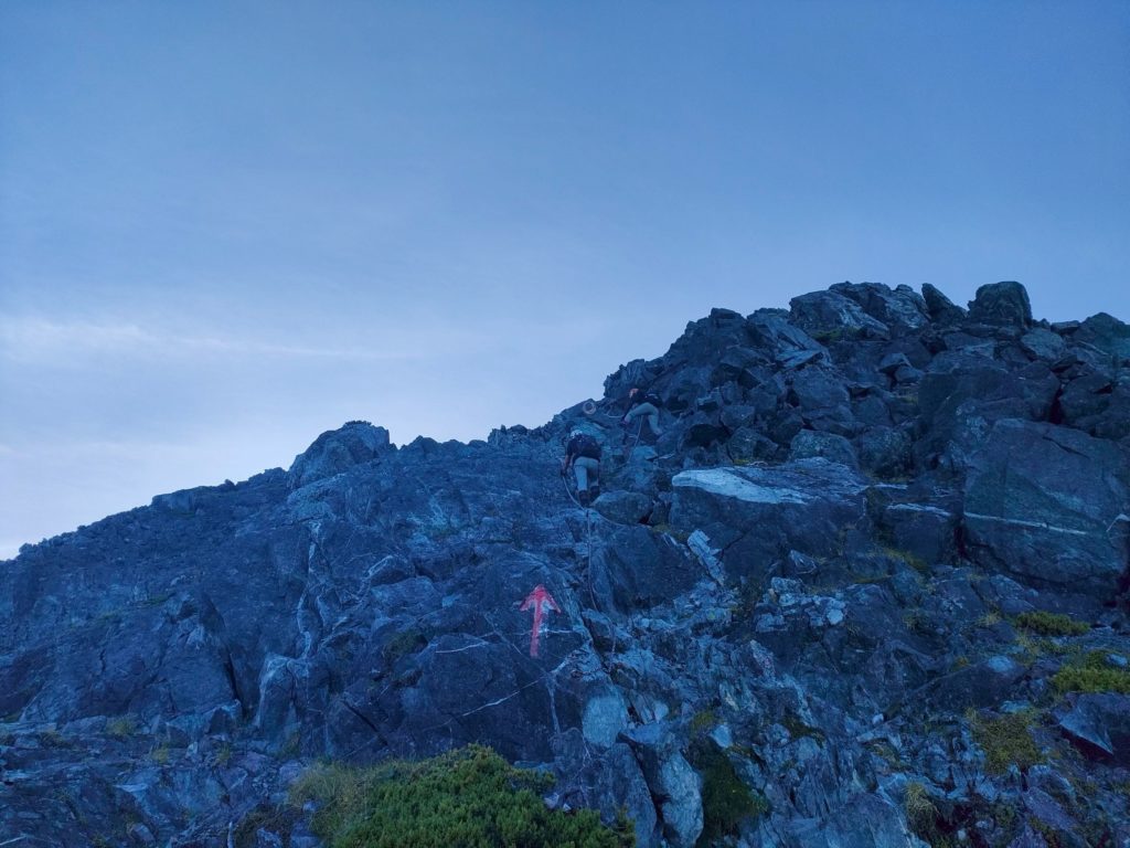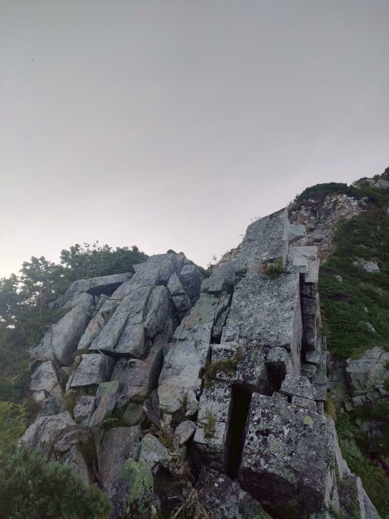 これらの岩稜帯は濡れていると一気に危険度が上がるので状態次第では引き返す勇気と判断力が求められます.