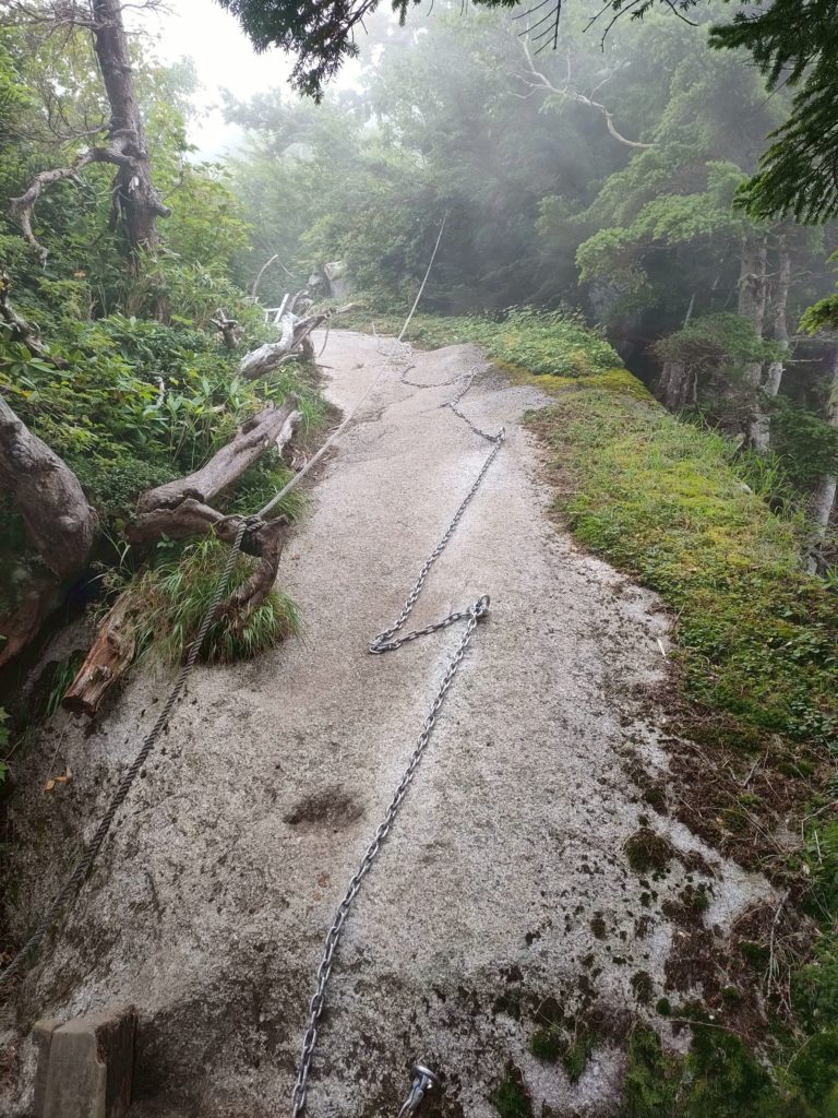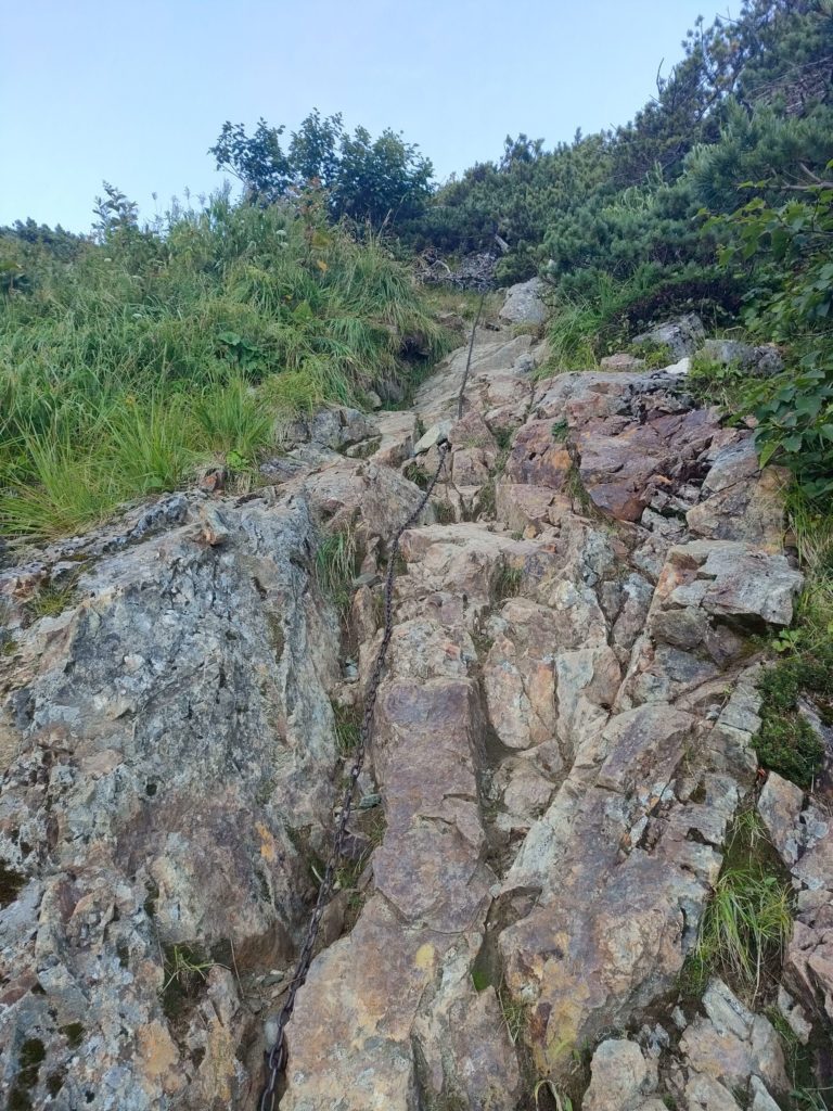 2600mまでは難所はありませんが,2400mを越えたところで1か所鎖場があります.とはいえ手も足も豊富にあるため難しくはありません.