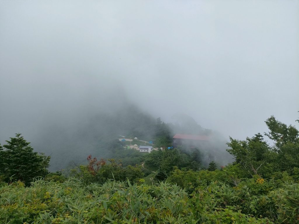 2200mの丸山まで一気に上がるとすぐ眼下には早月小屋が見えています.